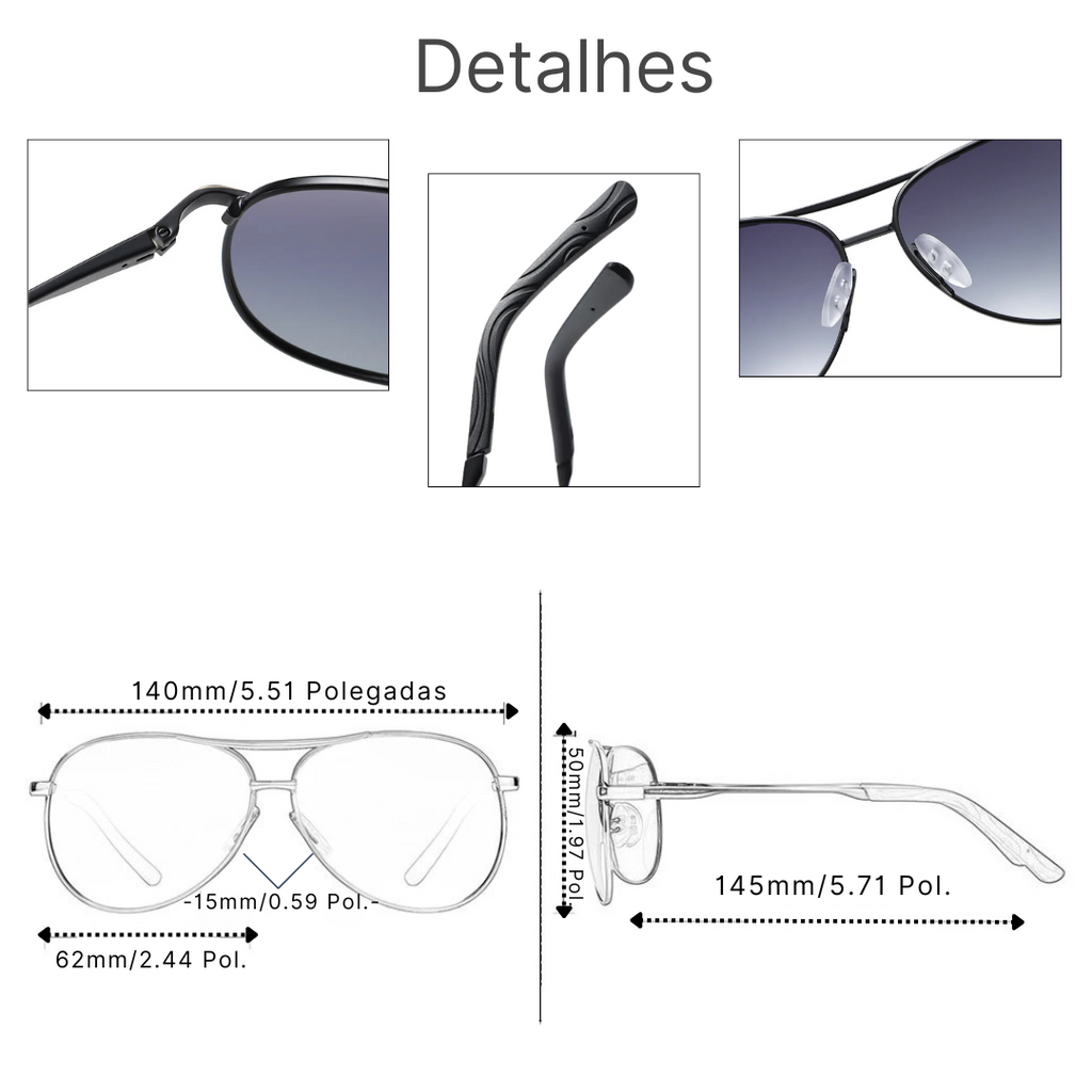 Atributos das Lentes: Polarizado, Espelhado, Gradiente, Antirreflexo, UV400