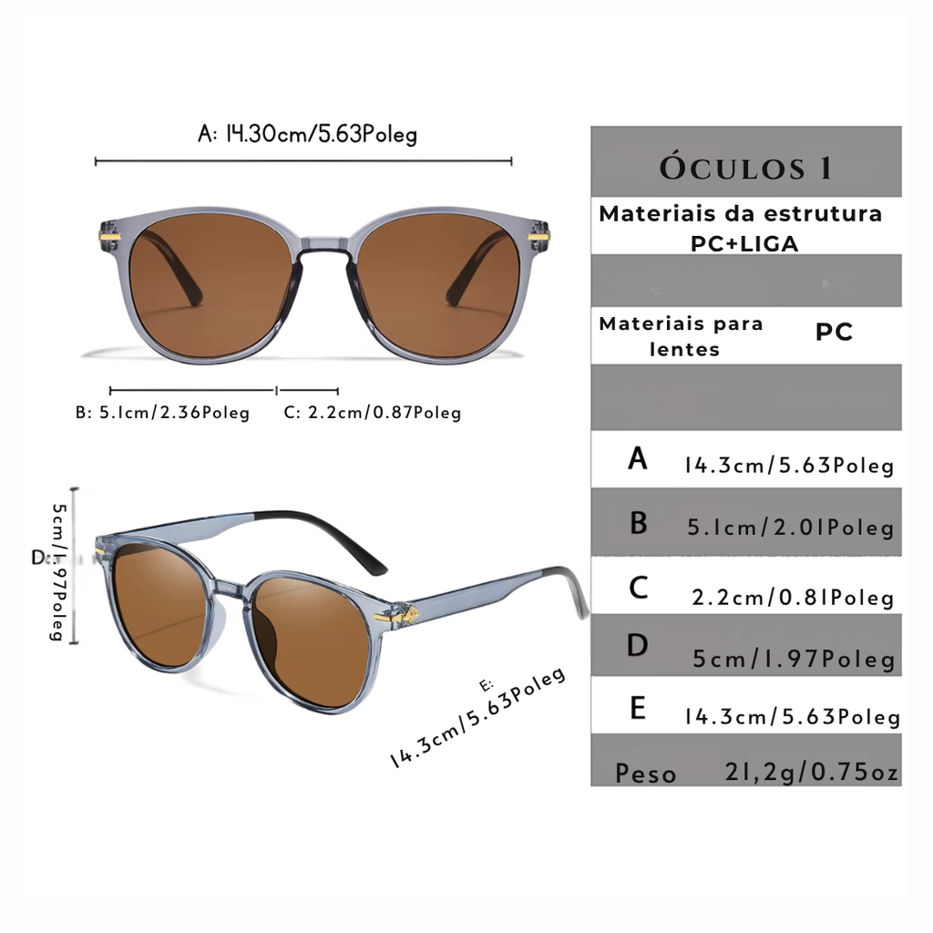 Inspirado nos ícones das décadas passadas, o Óculos de Sol Redondo Clássico Unissex traz de volta o charme do vintage com um toque atual. Seu design circular clássico combina com qualquer estilo, tornando-se o acessório ideal para quem busca autenticidade e presença em todos os momentos.
